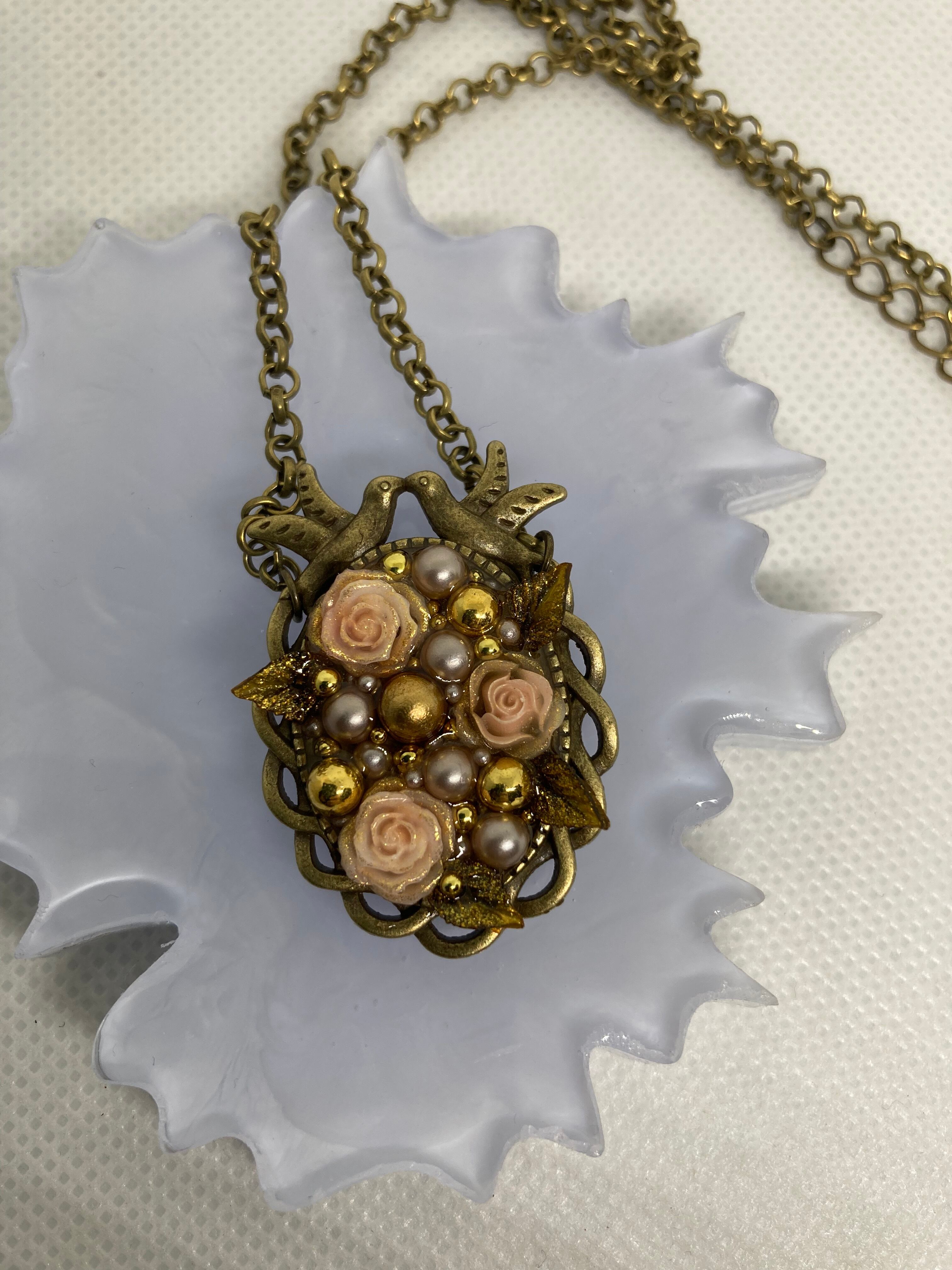 薔薇とパールを鳥の中に取り入れました。
